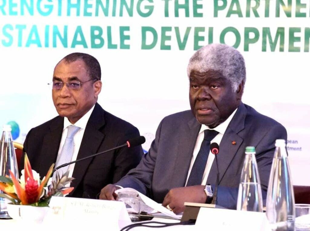 La cĂ©rĂ©monie dâouverture de cette Table ronde a Ă©tĂ© prĂ©sidĂ©e par le Premier ministre, Ministre des Sports et du Cadre de Vie, Robert BeugrĂ© MambĂ©, reprĂ©sentant le Vice-prĂ©sident de la RĂ©publique de CĂŽte dâIvoire, TiĂ©moko Meyliet KonĂ©. Le Ministre des Finances et du Budget, Adama Coulibaly, ses collĂšgues de lâEconomie, du Plan et du DĂ©veloppement, Kaba NialĂ© ; de lâAssainissement et de la SalubritĂ©, BouakĂ© Fofana ; et des Eaux et ForĂȘts, Laurent Tchagba sont les membres du Gouvernement prĂ©sents Ă ces assises.
