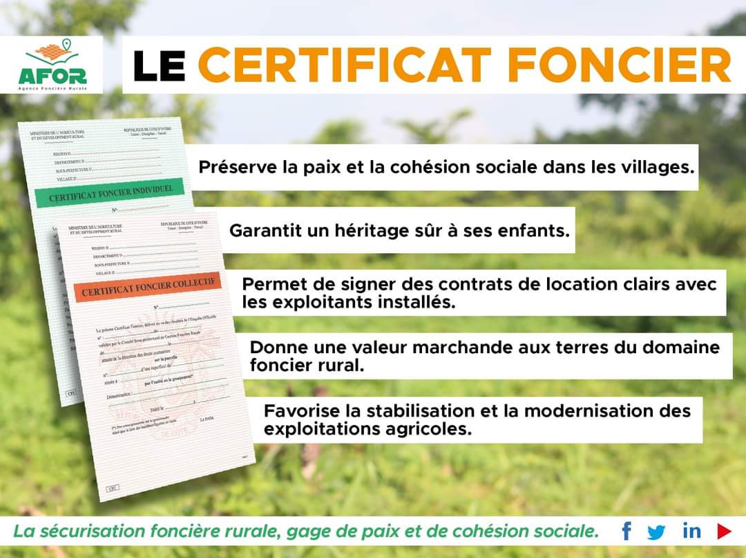 Voilà qui vient justifier, si besoin en était encore, que le Certificat Foncier, au-delà de sécuriser les terres et de prévenir durablement des conflits fonciers, demeure un gage certain auprÚs de certains établissements bancaires.