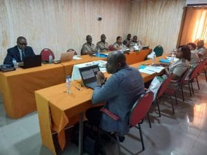 La session des 8 Secrรฉtaires Gรฉnรฉraux de prรฉfecture de Yamoussoukro, dโAttiรฉgouakro, de Toumodi, de Didievi, de Djekanou et de Tiรฉbissou, a รฉtรฉ ouverte par M. Kรฉbรฉ KANTE, Responsable de la Planification et du Suivi-Evaluation ร lโAFOR. M. Edmond SEYO, cadre de lโAFOR, assurant la formation.