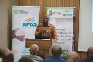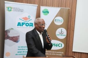 Le Président du Conseil d’Administration de l’OPHéCI, M. Michel DIBI-KOBLAVI a salué l’engagement de l’AFOR et exprimé son inquiétude face au faible niveau de sécurisation au sein de la filière. « J’avais initié l’opération un planteur d’hévéa, un certificat foncier, mais les coûts étaient trop élevés. Avec l’AFOR, c’est une véritable opportunité. Cette formation nous permettra de comprendre les dispositifs existants, les coûts, les procédures et les projets mis en place » a-t-il affirmé, appelant à une large diffusion des informations reçues.