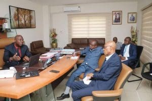La délégation également composée du 4e Vice-Président M. N’GUESSAN Kouassi Denis et de M. YAO Gaétan, Sous-directeur des études prospectives et veille stratégiques du Conseil Régional du Lôh-Djiboua est venue s’informer de l’état d’avancement de la sécurisation foncière rurale dans la région et voir des perspectives de coopération de grande importance entre l’AFOR et le Conseil Régional, eu égard à la problématique foncière dans cette zone forestière qui a accueilli de nombreuses populations allogènes et au phénomène récent de l’orpaillage, qui fragilise les relations intercommunautaires, débouchant assez souvent sur des conflits communautaires.