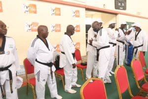 Paré de son dobok , les lèvres noyées dans un sourire rassurant d’une âme destinée à la gloire ,Me Jean-Marc YACÉ accompagné de ses inconditionnels dont Me Koné Souleymane Roël ,le Directeur de Campagne ,Me Gnava ,Me Boubacar Coulibaly ,Me Kessin ,s’est invité au centre Mathieu Ray de Koumassi et au Forum de l’université Felix Houphouët Boigny pour porter son message bâti autour du » Rassembler -Former -Financer » » Pour un Teakwondo plus fort « .