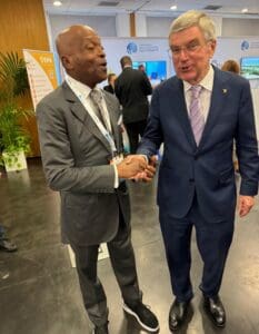 Il s’agit de Sir Thomas Bach ,Président du CIO, Sir Robin Mitchell ,Président de l’ACNO, M Beraf Mustapha, président de l’Association des Comités Nationaux Olympiques d’Afrique (ACNOA),M Kalkaba Malboum, président du CNOS du Cameroun et président de la nouvelle association Confédération des Fédérations Olympiques Africaines.