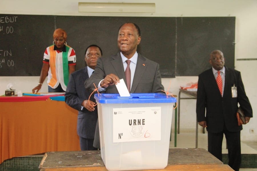 « Je viens de voter pour le scrutin législatif. Selon les informations que j’ai reçues du Ministre d’Etat Ministre de l’intérieur et de la sécurité (MEMIS), le scrutin se déroule de manière apaisée sur l’ensemble du territoire national. Ce que nous souhaitons », s’est réjoui Alassane Ouattara à l’issue de son vote au lycée sainte Marie de Cocody (quartier chic d’Abidjan) en compagnie de son épouse.
