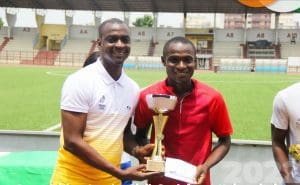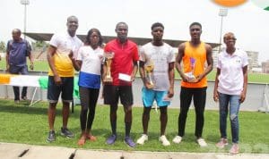 Le patron de l’athlétisme en Côte d’Ivoire pour arborer le large sourire.Il y a bien de quoi ! Après seulement une année d’existence ,les pôles d’entraînement produisent déjà de succulents fruits .L’illustration avec ces jeunes loups nés entre 2000 et 2007 qui ont séduit Robert Champroux.En effet Klah Dawa Ange Ella ( 15 ans ) de San pedro a fini 3e au 100 en (12.8) et 2e au saut en longueur (4m98) derrière la senior Bessehon Flore ( 5m52) . Djehi Lou Yonan Chantal (16 ans) de Daloa quant à elle ,a terminé avec la meilleure performance du 400 m ( 59.2) dans sa besace.Kéita Maimouna ( 18 ans ) du pôle d’Abidjan,elle s’adjuge les deux premières places aux 3000 m en ( 12.59.2) et 5000 m en 19.29.5 quand Kéita Mounira ( 21 ans ) a fini 2e du triple saut avec 11 m 42 derrière Flore Bossehon ( 11m80).Kouadio Adjoua Silvie (18 ans) de Dimbokro s’est illustrée en terminant 2e du 200 m en 26.7 . » Cela montre qu’il y a du bon travail qui est fait et que nous sommes sur la bonne voie »,s’est rejoui Jeannot Kouadio ,le Président de la FIA.