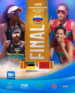 Chez les dames, les Marocaines ont confirmé leur suprématie en s’imposant face au Mozambique en finale. Elles ont remporté la rencontre en deux sets secs (21-15, 23-21), au terme d’un match maîtrisé.