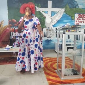 Oratrice du jour ,la Prophétesse et Chantre Chantal ADOMAH s’est inspirée de Proverbes 12:4 pour appeler ses sœurs et filles à être des femmes » remplies de vertus ».