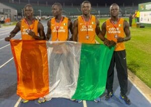 KOUAME Kouadio Éric ont fait le job.Ils finissent 2e avec un bon temps de 39”92 s. Le Nigeria domine les debats en (39.49 s) quand le Ghana est 3e en 40.47 s. »On a roulé,je l’avoue.On a donné le meilleur de nous.On aurait voulu avoir la médaille d’or hélas.Toutefois ,on reste fiers de notre course. »,nous confie Adzeu Yapo Jacky Ulrich.