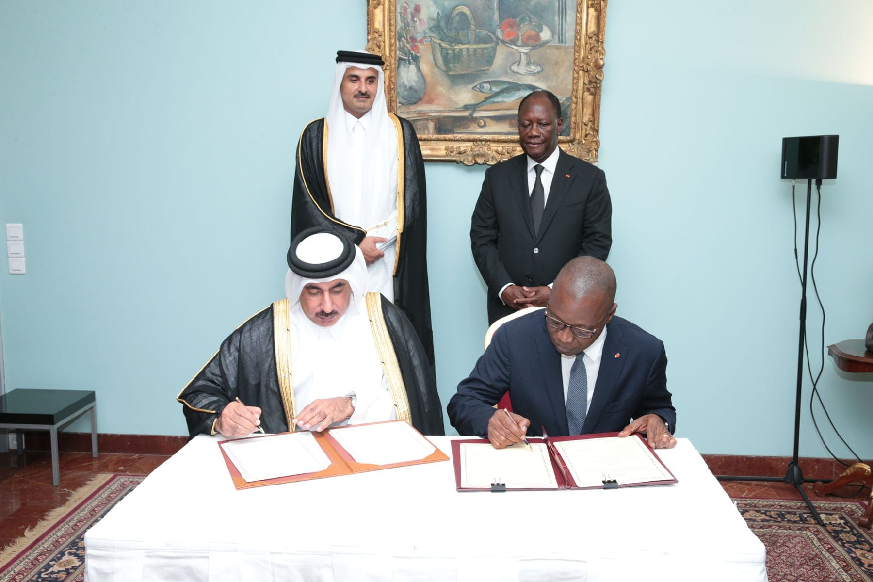 Ces accords ont été signés par les ministres en charge de ces questions en présence du chef de l’Etat ivoirien Alassane Ouattara et de l’Emir du Qatar, Son Altesse Cheikh Tamim Bin Hamad Al Thani qui effectue une visite officielle d’amitié et de travail de 48 heures en terre ivoirienne .