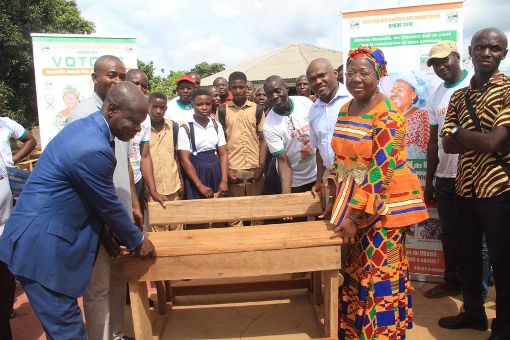 Ce don qui est une première vague sur un total de 500 tables-bancs prévus, a été officiellement remis au cours d’une cérémonie à l’espace Relais de Brobo en présence du Conseiller extra-scolaire chargé des Comités de gestion des établissements scolaires (COGES) à l’Inspection de l’enseignement primaire (IEP) de Brobo, François Allali, du Proviseur du Lycée municipal Zoumanan Kouamé et du Président de l’Union des COGES 20 Jacob Koffi Déma, également président du COGES du village de Bounda.
