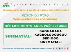 Il s’agit du Programme d’Appui à la sécurisation foncière rurale (PASFOR) qui sera mis en œuvre dans 4 régions (Gbêkê, Hambol, Poro, Tchologo) et 5 départements(Béoumi, Botro, Katiola, Sinematiali et Ferkessédougou).Ce programme court de 2025 à 2029.