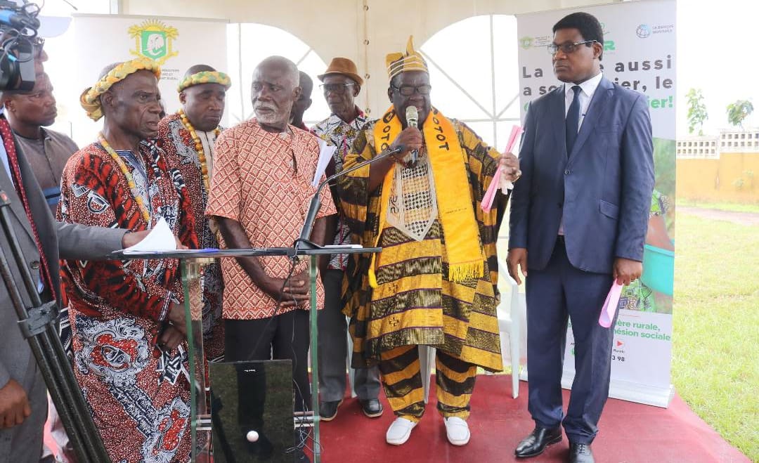 « La loi de 98 stipule clairement que tous les droits acquis sont protégés. C’est-à-dire que tous vos droits coutumiers et d’usage vous sont reconnus. L’Etat n’a pas pour objectif de vous arracher vos terres. Il est important de reconnaître sur la carte de la Côte d’Ivoire, à qui les lopins de terre appartiennent. Cela, pour éviter les palabres. Il faut donc faire enregistrer vos droits sur les terres pour garantir la paix», a soutenu M. David LOUÉ.