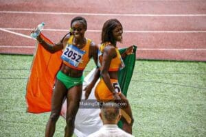 Alors qu’elle entendait l’Abidjanaise rententir dans le ciel doualais au soir historique succès ,Jessika Gbaï se disait sûrement » Quelle chance! Je reviens de loin ».En effet ,victime d’un pépin physique, elle dût s’éloigner du tartan depuis sa 2e place acquise le 11 mai 2024 en 22.53 s au stade national de Kingston (Jamaïque).L’ivoirienne de 25 ans réussit donc un retour fracassant après cette consécration continentale.Et C’était à un mois jour pour jour du début des 33es jeux olympiques Paris 2024.
