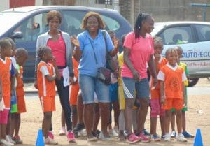 Présents en masse dès les premières heures de la journée ,les gamins ont donné le meilleur d’eux lors des différents ateliers composés entre autres de la Formule 1,le lancer de médecine ball ,la course d’échelle ,le saut de grenouilles ,le lancer vortex pour le kid’s athletics et le 60 m plat pour la tranche allant jusqu’à 15 ans.Un enthousiame fou et une détermination sans pareille des enfants qui ont énormément séduit les techniciens. » Nous sommes satisfaits à 90% à l’issue de cette activité.Nous sommes heureux de l’engouement . Réussir à mobiliser 451 enfants ,c’est un exploit ! Grand bravo à Madame OLONADE pour le travail.Nous sommes également contents du niveau de nos enfants.Nous tenons à remercier Mme Traoré, la directrice du centre d’enseignement professionnel de Port-Bouet qui nous a accordés l’ autorisation pour utiliser leurs infrastructures sportives afin de démarrer le centre d’entraînement d’athlétisme de Port-Bouet. « ,nous a confié Mme OUATTARA née YAO Christiane ,Vice Présidente de la fédération chargée de la promotion des jeunes .
