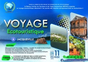 Plusieurs activités seront au coeur de ce voyage écotouristique.Il s’agit de la découverte de l’éco lodge » Kafolo » modèle de projet écotouristique,un entretien avec un promoteur d’un éco hôtel,une formation en entrepreunariat dans le métier de tourisme.À ces articulations s’ajoutent le concours de connaissance des sites et curiosités écotouristiques ainsi qu’une visite des maisons coloniales de Jacqueville.