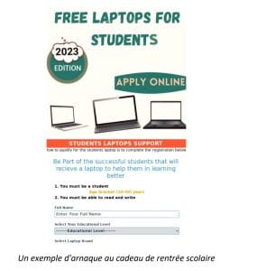 L’une des tactiques employées par les cybercriminels découvertes par Kaspersky consiste à créer de faux jeux concours permettant prétendument aux étudiants de gagner un ordinateur portable. Pour pouvoir