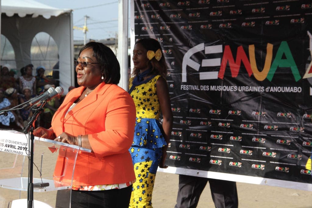 Mme Anne Désirée Ouloto, ministre de la salubrité, de l’environnement et du développement durable a offert des kits de salubrité, des gadgets, des tee-shirts, des casquettes… d’une valeur de 10 millions FCFA au Commissariat général du Festival des musiques urbaines d’Anoumabo (FEMUA) pour soutenir le thème de cette dixième édition, ‘’l’Afrique, face au défi du réchauffement climatique’’.