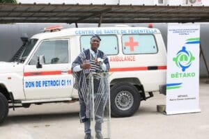 L’ancienne ambulance, » calée » depuis plus d’un an, avait plongé les habitants dans un véritable calvaire, compliquant les évacuations médicales et la prise en charge des urgences. Avec ce don, l’accès aux soins et la sécurité sanitaire des populations de Férentella et de tout le département de Ouaninou connaîtront un tournant décisif.« Au nom de Petroci CI 11, je vous remets les clés de cette ambulance », a déclaré M. Sidibé Mohamed, représentant de la structure donatrice, avant de saluer « le modèle de développement communautaire incarné par BÊTAKO et son président, le ministre Bamba Cheick Daniel ».