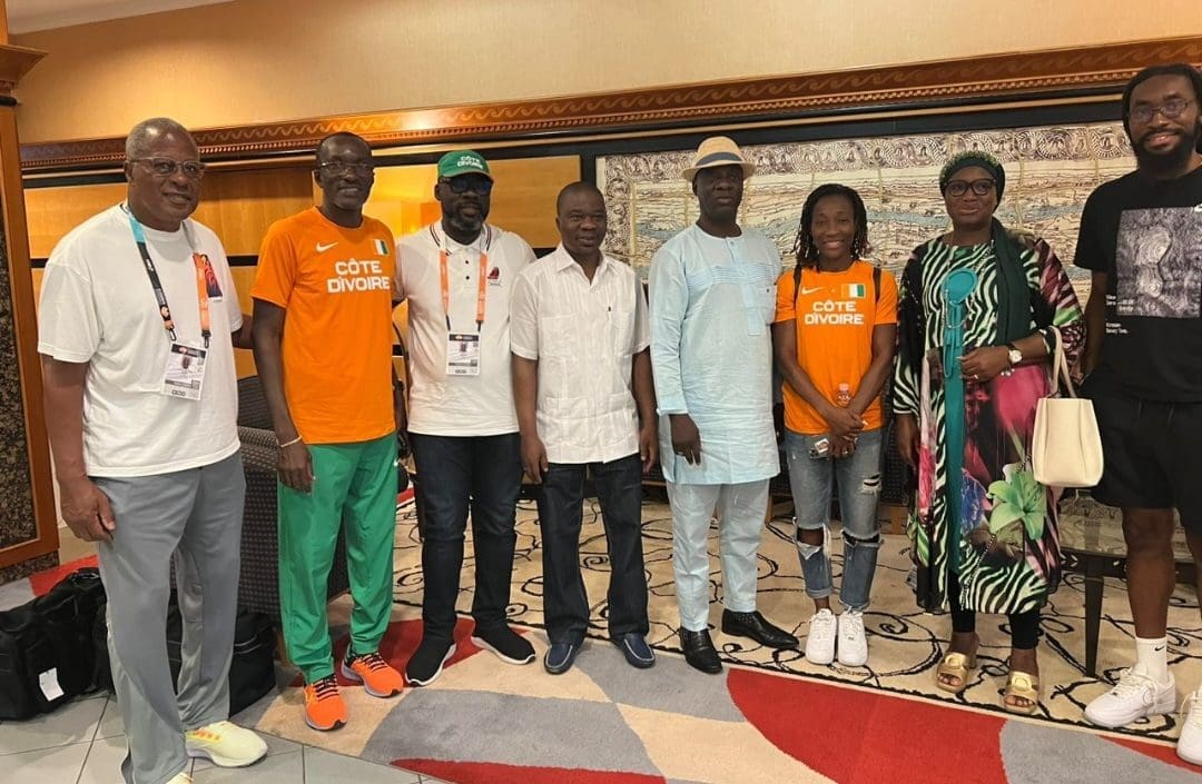 Abidjan,le 26 août 2023(Abidjanpress)-À quelques heures de la finale du relais 4×100 m,les athlètes ivoiriens ont reçu la visite de SEM Cissé Yacouba,Ambassadeur ,Représentant Permanent de l’Ambassade de Côte-d’Ivoire à Vienne en Autriche et SEM Dole Gueu Albert,représentant permanent Adjoint de l’Ambassade Côte-d’Ivoire à Vienne (Autriche ).