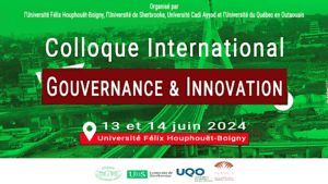 Le colloque « Gouvernance et Innovation » est un forum international créé par l’Université de Sherbrooke et l’Université du Québec en Outaouais. Initié par le Professeur Félix Zogning de l’Université de Sherbrooke, ce colloque vise à promouvoir une réflexion approfondie sur les thèmes émergents de la gouvernance et de l’innovation. Depuis sa première édition en 2017 à Montréal, l’événement a parcouru le monde, avec des éditions précédentes à Montpellier, Gatineau, Sherbrooke et Marrakech.
