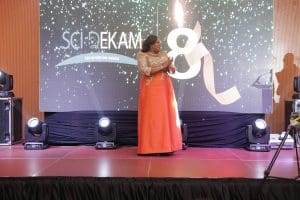 « C’est avec un immense plaisir conjugué à un réel sentiment de fierté que nous vous recevons ce soir dans cette somptueuse salle pour célébrer un moment particulièrement spécial dans l’histoire de notre entreprise immobilière, La SCI DEKAM. Aujourd’hui, nous marquons huit années de passion, de résilience, de foi en Dieu à qui je veux rendre toute la gloire, de travail acharné et de réussite« , s’est réjouie la DG .Puis d’ajouter: »Huit années, durant lesquelles nous nous sommes attelés a matérialiser les rêves de nos clients, a permettre aux différentes familles de trouver un chez-soi, à transformer des espaces en lieux de vie, en communautés florissantes et en opportunités d’investissement« .
