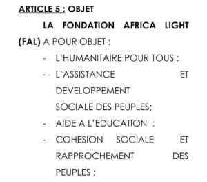 Africa Light est une nouvelle fondation que j’ai créée.J’ai été inspirée par le florilège de projets de développement,de solidarité et d’assistance qui pullulent en moi .Africa Light prône la solidarité, l’assistance , l’éducation et le développement.Et qui dit développement ,dit tourisme.C’est donc un champ vaste que je m’apprête à défricher.J’adore mon pays ,j’adore le tourisme.Et je reste cette ambassadrice du tourisme qui veut voir ses frères et sœurs heureux.Voici tout le sens de la création de cette fondation.Nous avons démarré tout doucement nos activités et tout se passe fort bien.