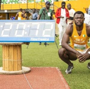 Cissé Gué Arthur n’a pas pu courir. Lors de l’éveil musculaire, il a ressenti une petite gêne. Nous n’avons pas voulu prendre de risques, d’autant plus qu’il y a les championnats du monde en septembre. Je lui ai donc demandé de se reposer.Mais Ulrich Jacky Adzeu a dignement représenté Cissé et la Côte-d’Ivoire, avec un chrono de 10,35 s sur 100 m et 20,72 s sur 200 m. C’est une performance tout à fait respectable, d’autant plus qu’il s’entraîne ici, en Côte d’Ivoire.
