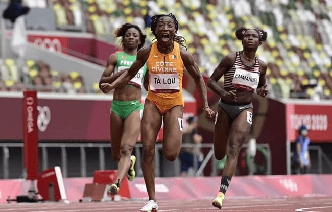 Marie Josée Ta Lou pour sa part n’a guère fait dans la dentelle. La 5e mondiale avant Tokyo et 4e à Rio a littéralement explosé toutes ses adversaires. Elle finit première avec un record de 10.78 devant la britannique Neita D (10.96) et la Canadienne Emmanuel C (11.18). Le meilleur de toutes les séries. Elle égale le record de Murielle Ahouré établit le 11juin 2016 à Montverde et celui de la jamaïcaine Shelly Ann Fraser Pryce lors de son sacre aux jeux olympiques en 2012.