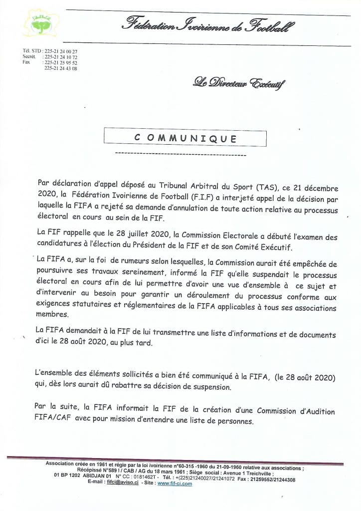 La maison»Actualité»Sport»Football»La FIF saisit le TAS
