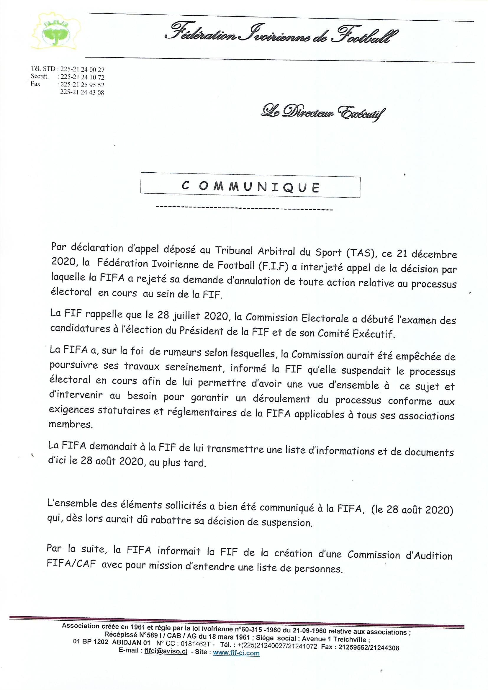 La FIF saisit le TAS