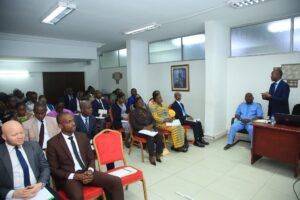 Cette communication a été assurée par COULIBALY Nahouo Amadou, Préfet et Directeur de la Communication, de l’Information, de la Formation et de la Sensibilisation de l’AFOR. Il était assisté de Monsieur GNOÉRÉ Charles, Chargé d’études à la Direction des Opérations Techniques de l’AFOR. Intervenant au nom de la Direction Générale, le Directeur de la Communication et de la Formation a salué les nouveaux promus et souligné le rôle central du Corps préfectoral dans le dispositif national de sécurisation foncière.