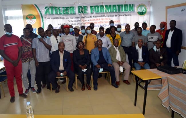 L’Association des journalistes sportifs de Côte d’Ivoire (Ajsci) a organisé un atelier de formation en collaboration avec le Centre de médecine du sport (Cms) de l’Institut national de la jeunesse et des sports (Injs), le 4 décembre 2020 à Marcory sur le thème: «Le journaliste sportif face aux défis de la médecine du sport». 4 sous-thèmes étaient arrimés à cette cession qui a connu un réel engouement, au regard de la cinquantaine de participants (journalistes, étudiants, athlètes…).