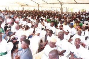 Cet engagement a été pris au cours de la réunion publique de lancement des opérations de terrain du PRESFOR, qui se déroulait en présence du Corps Préfectoral, du Ministre BAMBA Cheick Daniel et de la délégation de l’AFOR, des élus et cadres du Poro, de sa Majesté Issa COULIBALY, Chef de terre, Chef central du canton de Korhogo, 1er Vice-Président du Directoire de la Chambre Nationale des Rois et Chefs Traditionnels de Côte d’Ivoire, des chefs de village et de communauté, des membres des Comités Villageois de Gestion Foncière Rurale (CVGFR).