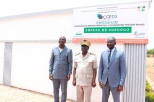Cet engagement a été pris au cours de la réunion publique de lancement des opérations de terrain du PRESFOR, qui se déroulait en présence du Corps Préfectoral, du Ministre BAMBA Cheick Daniel et de la délégation de l’AFOR, des élus et cadres du Poro, de sa Majesté Issa COULIBALY, Chef de terre, Chef central du canton de Korhogo, 1er Vice-Président du Directoire de la Chambre Nationale des Rois et Chefs Traditionnels de Côte d’Ivoire, des chefs de village et de communauté, des membres des Comités Villageois de Gestion Foncière Rurale (CVGFR).