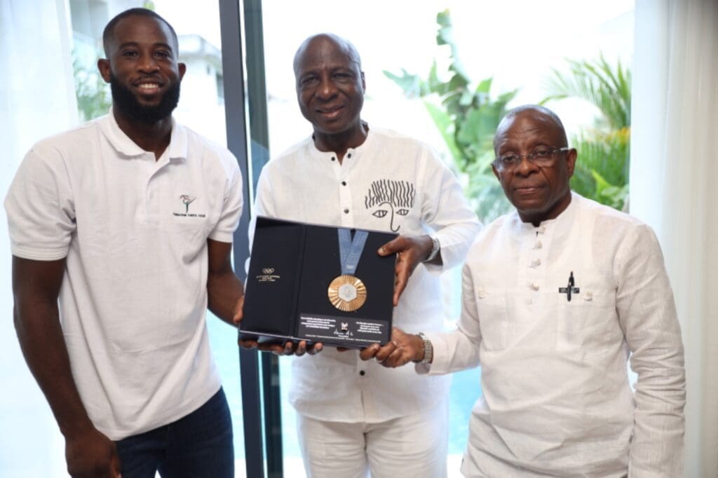 Abidjan,le 03 septembre 2024(Abidjanpress)-Rentré de Paris (FRANCE) paré de la seule médaille olympique de la délégation ivoirienne ayant pris part aux dernières olympiades tenues sur la terre des ancêtres de Pierre De Courbertin du 26 juillet 2024 au 11 août 2024, Cissé Cheick Sallah Junior qui profite d’un temps de repos bien mérité à Abidjan depuis le 12 août dernier a tenu à traduire sa reconnaissance à Maître Bamba Cheick Daniel.