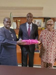 Son remarquable passage à la tête de la Fédération Ivoirienne de Taekwondo (FITKD) avec les innombrables acquis qu’il lègue à la postérité, continue de lui valoir la reconnaissance de nombreux Taekwondo ins d’ici et d’ailleurs. C’est dans ce cadre qu’il faut inscrire la démarche de Me TRAORE Ali, CN 1ère Dan, Président de la Ligue Régionale de Taekwondo de la Bagoué (Boundiali), et le doyen DAH Ouollo. Ces deux pionniers du Taekwondo à Boundiali, ont en effet parcouru les 800 km qui séparent cette localité d’Abidjan, pour venir traduire leur gratitude et leur reconnaissance au Grand-Maître BAMBA Cheick Daniel. La rencontre a eu lieu dans les bureaux du tout nouveau Président du Conseil d’Administration du Centre Sportif, Culturel et des TIC Ivoiro-Coréen Alassane OUATTARA, à Cocody-Angré 7e Tranche, ce vendredi 3 décembre 2021 à la mi-matinée.