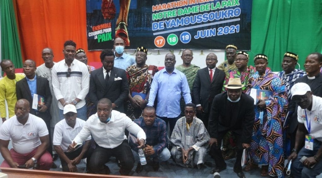 » Ensemble ,courons pour la paix! ».Tel se décline la thématique autour de la première édition du marathon international notre dame de la paix de Yamoussoukro qui se disputera sur 72 heures.Un thème d’actualité auquel tous souscrivent pleinement dans une Côte d’Ivoire sans cesse en quête de paix . Des rois et chefs traditionnels en passant par les différents ministères présents jusqu’au Représentant du ministre gouverneur et les autres entités de la capitale politique ivoirienne ,tous sont mobilisés pour faire de cet événement ,un succès pour oeuvrer à la paix.