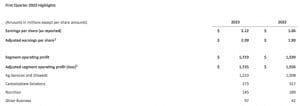 Le deuxième trimestre « devrait être plus faible, principalement en raison de la baisse des bénéfices dans le sous-segment de trituration, car les marges mondiales de trituration du soja se sont comprimées depuis la fin de 2022 », a déclaré à Reuters l’analyste du CFRA, Arun Sundaram.