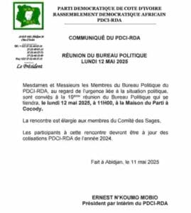 Le Parti Démocratique de Côte d’Ivoire – Rassemblement Démocratique Africain (PDCI-RDA) entre dans une nouvelle phase de son histoire. Le dimanche 11 mai 2025, Tidjane Thiam a annoncé, par voie de communiqué, sa décision de se retirer de la présidence du parti. Il justifie ce choix par des pressions judiciaires qu’il qualifie de ciblées, visant à la fois sa personne et le PDCI.