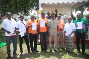 M. Atchueman Kouamé Jean Noël , Secrétaire du Comité Villageois de Gestion Foncière Rurale (CVGFR) d’Ettienkro (sous-préfecture d’Anuassué), porte-parole des récipiendaires, a remercié l’AFOR qui a « œuvré pour qu’ils soient bénéficiaires. Nous promettons à en faire bon usage pour le bonheur de nos familles et de nos descendants ».