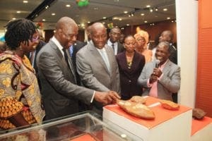 Selon le ministre de la Culture et de la Francophonie, Bandama Maurice, cette activité qui nous réuni est une exposition intitulée ‘’100 ans de recherches archéologiques en Côte d’Ivoire ‘’ s’inscrit dans le cadre général de la valorisation du patrimoine culturel ivoirien, et particulièrement du patrimoine archéologique‘’ de la Côte d’Ivoire.