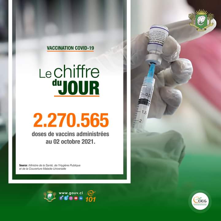 A la date du 5 octobre 2021, la Côte d’Ivoire compte donc 60 481 cas confirmés dont 58 474 personnes guéries, 652 décès et 1 355 cas actifs.