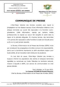 Présumée Attaque terroriste à la frontière Ivoiro-Ghanéenne: L’Etat-Major dément