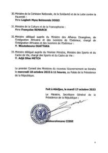 Abidjan, le 17 octobre 2023(Abidjanpress)-24 heures après la nomination de M. Robert Beugré Mambé au poste de Premier Ministre, l’on a une idée claire sur son gouvernement .