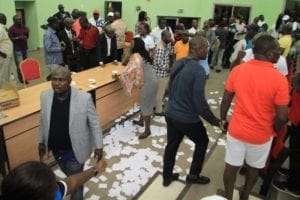 Visiblement mécontents, des congressistes ont empêché le vote, dispersant sur le sol les feuilles vierges devant servir de bulletins de vote pour le second tour. Au premier tour, cependant, les choses se sont passées dans le calme et la transparence.