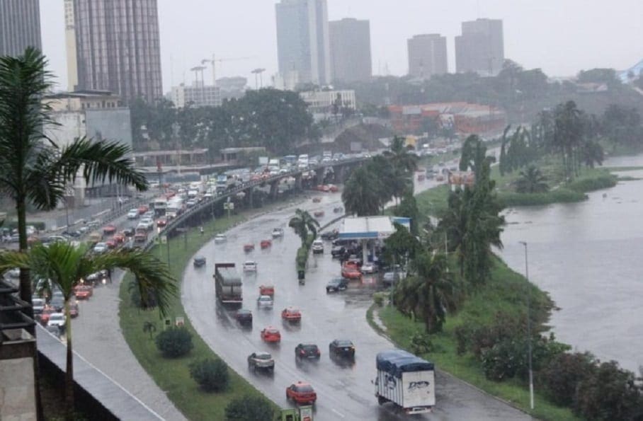 Sur le boulevard Valérie Giscard d’Estaing qui mène à l’aéroport Felix Houphouët Boigny du rond-point Akwaba à Marcory Ibis, une longue file de véhicules roulant à vitesse très réduite, se fait remarquer.