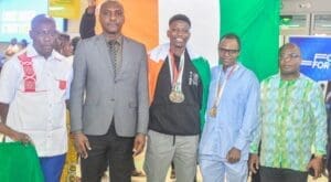 À leur arrivée à l’aéroport international Félix Houphouët Boigny, les champions du monde ont été accueillis dans la ferveur par de nombreux sportifs et surtout le représentant du Ministre délégué chargé des Sports et du Cadre de Vie