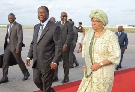 Arrivée à Abidjan de la présidente du Libéria, Sir Ellen Johnson