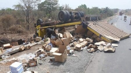 Un camion transportant du matériel de construction électrique, à destination de Korhogo (région du Poro), s’est accidentellement renversé, quatre roues en l’air, perdant sa charge, vendredi,…