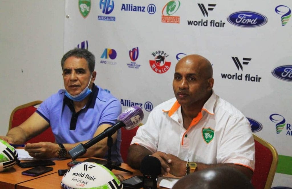 En prélude à la rencontre Côte d’Ivoire -Namibie prévue ce samedi au lycée d’Excellence Alassane OUATTARA de Grand-Bassam en ouverture des éliminatoires de la RAC 2021, Moustapha Gelti ,le représentant de Rugby Afrique ,Edgar Babou,le Manager Général de la sélection ivoirienne ,Ervin Neman , sélectionneur de la Namibie et Desideris Sethie , Capitaine de la sélection namibienne ont animé une conférence de presse ce jeudi à l’hôtel la Nouvelle Pergola.Voici « les bandes de conf »